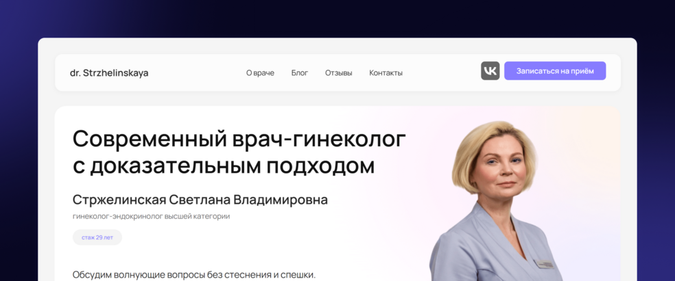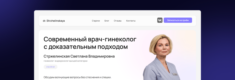 Создана полноценная экосистема, включающая в себя современный сайт, экспертный блог и онлайн-запись. Это предоставляет пациенткам всё для знакомства с врачом и получения медпомощи.